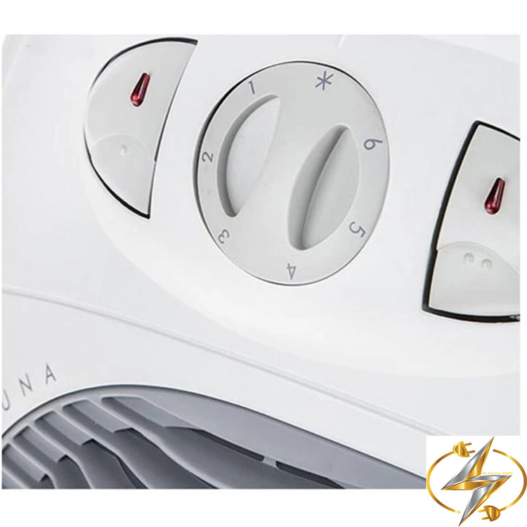 دارای دو عدد کلید جهت راه اندازی المنت های 1000 و 2000 وات با چراغهای نشانگر جداگانه روی هر کلید