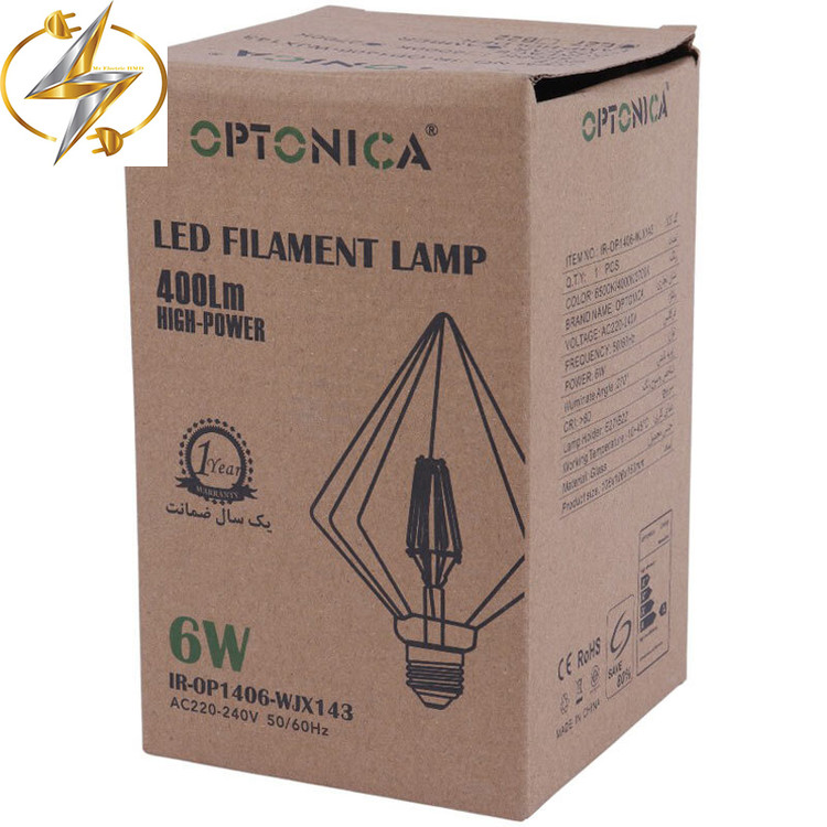 مشخصات لامپ فیلامنتی الماس 6 وات اپتونیکا IR-OP1406-ZS95: