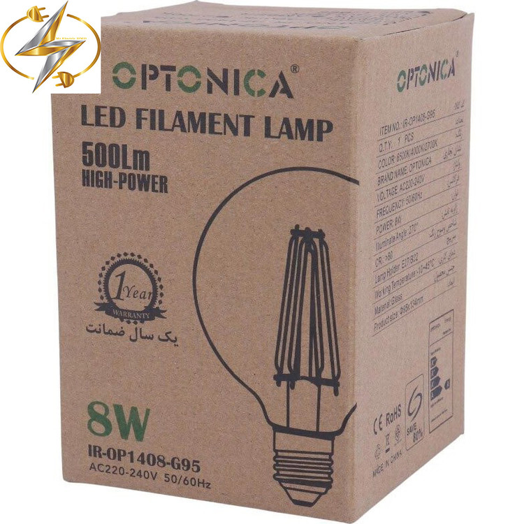لامپ فیلامنتی گرد 8 وات اپتونیکا IR-OP1408-G95