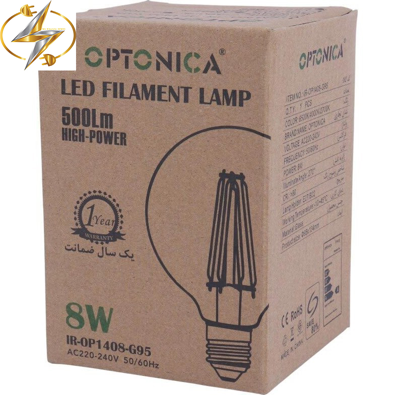 لامپ فیلامنتی گرد 8 وات اپتونیکا IR-OP1408-G95