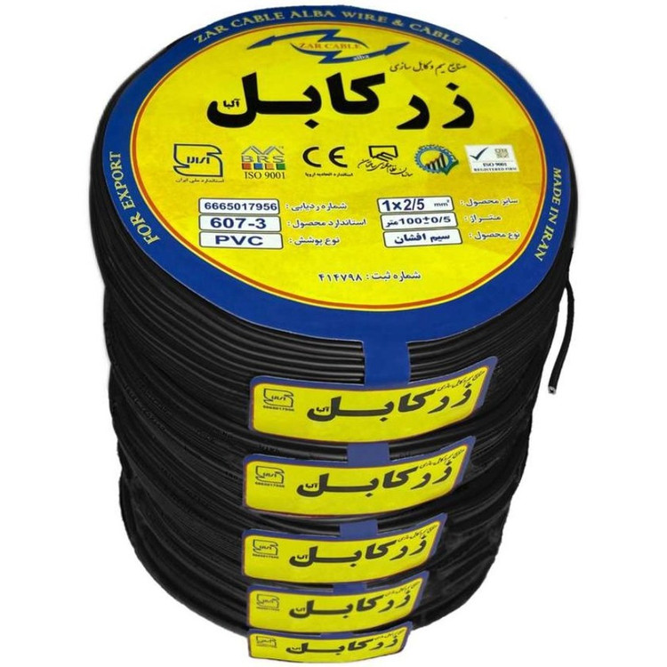 سیم برق افشان 2.5* 1 زرکابل آلبا حلقه 100 متری مغزی مس خالص با کیفیت درجه یک سنگین وزن
