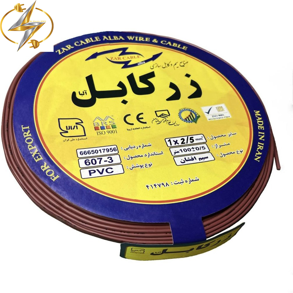 سیم برق افشان 2.5* 1 زرکابل آلبا حلقه 100 متری مغزی مس خالص با کیفیت درجه یک سنگین وزن