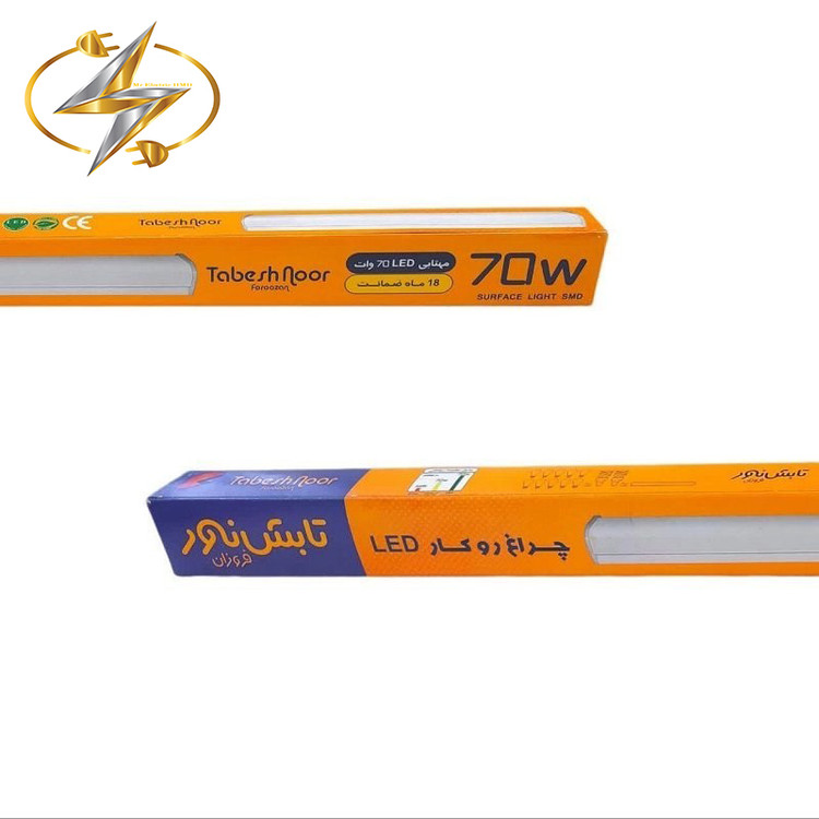 براکت 70 وات تابش نور فروزان با طول 90 سانتی متر ساخته شده است این مهتابی ال ای دی با کیفیت عالی و نوردهی بالا محصول شرکت صنایع روشنایی تابش نور فروزان میباشد. این مهتابی ال ای دی را با نام براکت LED یا چراغ های خطی LED نیز بشناسید که شرکت تابش نور در دو نوردهی مهتابی، نچرال(استاندارد) عرضه می کند. جهت انتقال حرارت بهتر و عمر بالاتر جنس بدنه این محصول از جنس آلومینیوم باکیفیت با رنگ پودری الکترواستاتیک ساخته شده است. جنس طلق روی مهتابی از جنس پلی کربنات و در مقابل نور و گرما مقاوم بوده و تغییر رنگ نمی دهد. زاویه تابش آن 180 درجه است که نور پخش زیادی را منتشر میکند. درون محصول صفحه SMD ال ای دی جهت نوردهی بالا و بهتر قرار داده شده است. نحوه نصب آن بسیار ساده و آسان بوده و به راحتی می توانید بر روی دیوار نصب کنید. همچنین در جعبه محصول بست و پیچ ها جهت نصب قرار داده شده است.