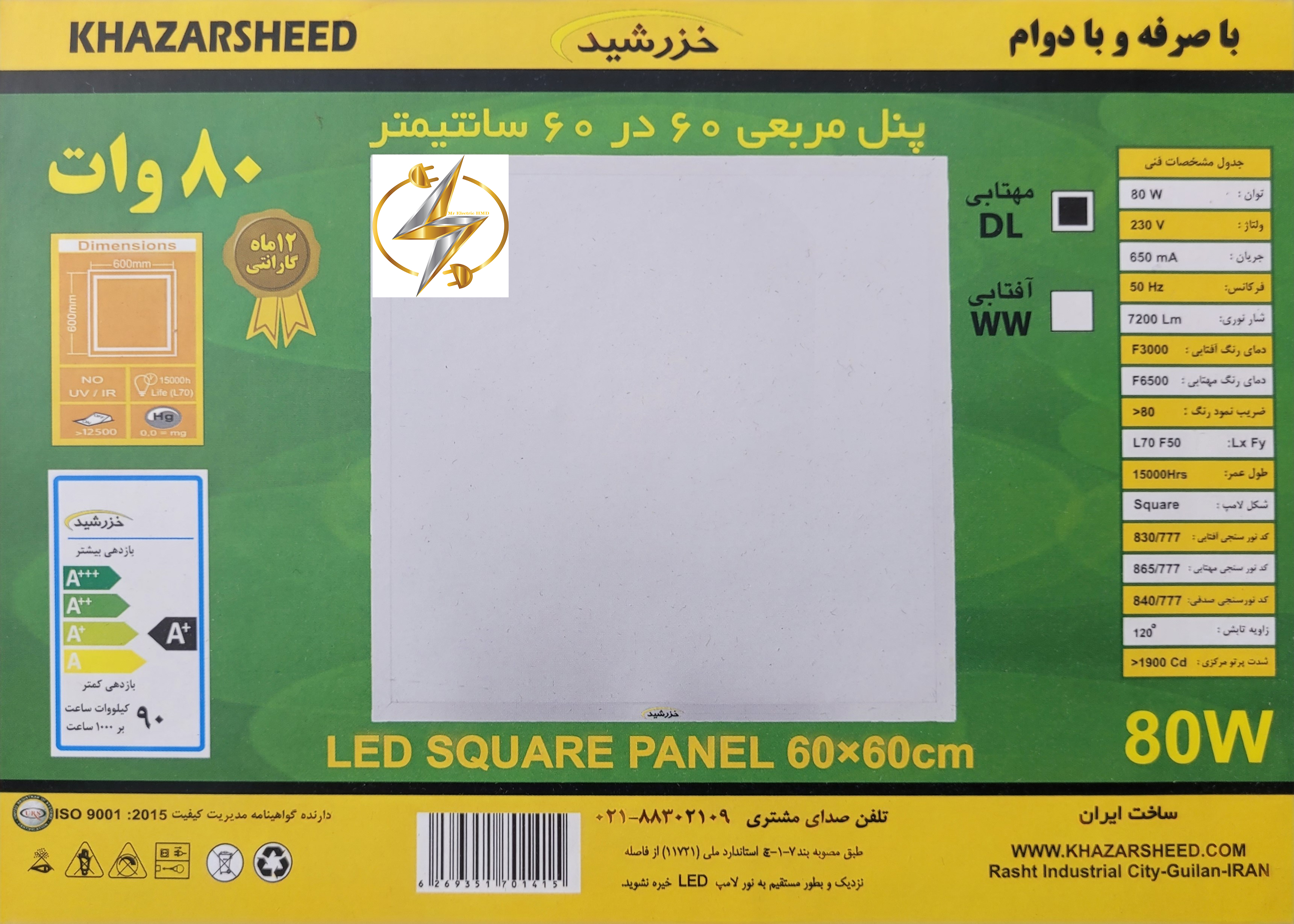 پنل ال ای دی 80 وات 60×60 مدل بک لایت خزرشید